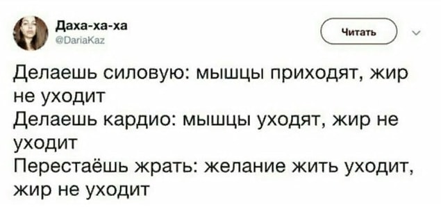 Ну что, уже сходили пару раз в тренажерный зал или на групповые занятия? Тогда пришло время шуток и мемов про спортик! Запасайтесь печеньками полезными морковными чипсами и вперед.
