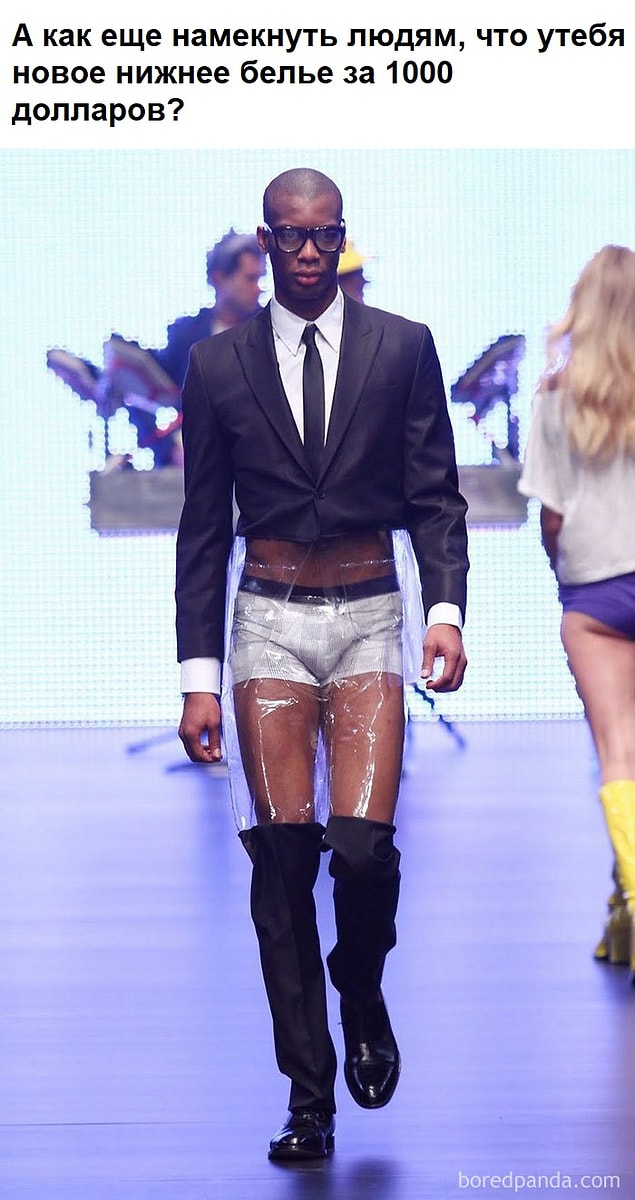 Ох уж этот мир высокой моды. Иногда некоторые творения известных домов моды переходят все мыслимые и немыслимые пределы адекватности. В погоне за оригинальностью они шьют такие образцы одежды, которые очень трудно представить на ком-либо еще, кроме бедных манекенщиц на подиуме. В общем, вот вам подборка свежих мемов на эту тему.