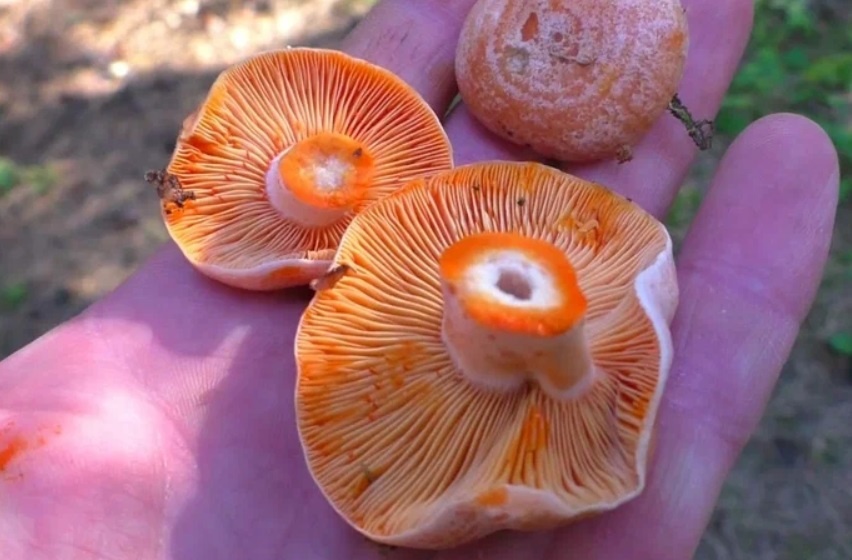 У этих грибов масса отличительных признаков — яркий рыжий цвет, толстая ножка, волнистая форма шляпки. Если остались сомнения (хотя, с чего бы?), то на срезе у рыжиков образуется оранжевый сок.