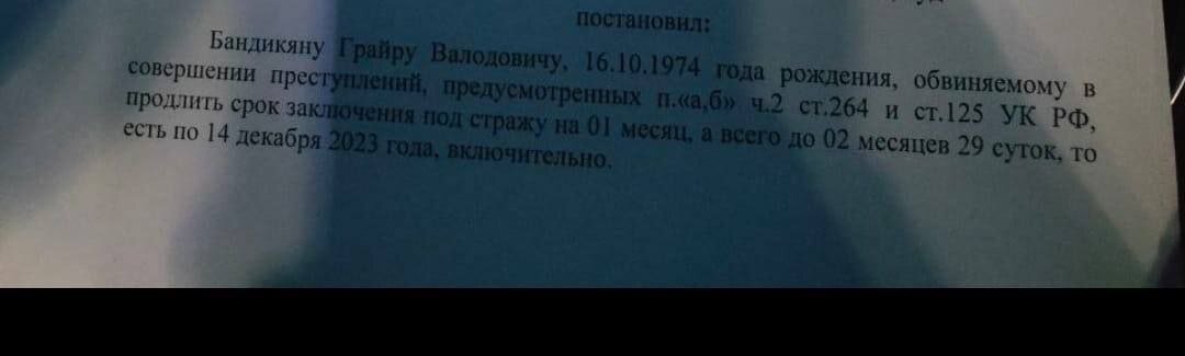 На фоне того, что пострадавшая вышла из комы (по нашим сведениям), но находится в крайне тяжелом состоянии, пошла информация о том, что водителю по имени Грайр Бандикян прислали из диаспоры московского адвоката. И теперь тот, кто изначально давал признательные показания о том, что пьяным сбил девочку, пошел в отказ. Сторона защиты развивает версию, что это вообще не он, не на том автомобиле и не тогда…