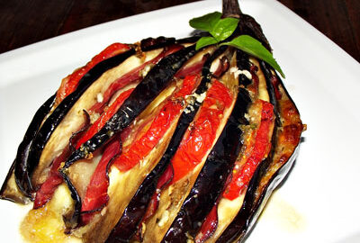 – ингредиенты для фаршировки, указанные в рецепте, не являются обязательными, вместо «Моцареллы» можно использовать любой твердый или плавленый сыр, ветчину можно заменить копченым беконом, курицей, шпиком, обычными кусочками вареного или запеченного мяса любого вида, а альтернативой оливковому маслу может стать любое растительное. Также можно добавить тонко нарезанный кабачок или цуккини, кольца сладкого салатного перца или вообще не использовать мясо, сделав это блюдо полностью вегетарианским, наполнив баклажанные веера только овощами и сыром;