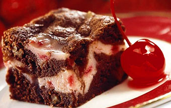 подаем Брауни с творогом и вишней