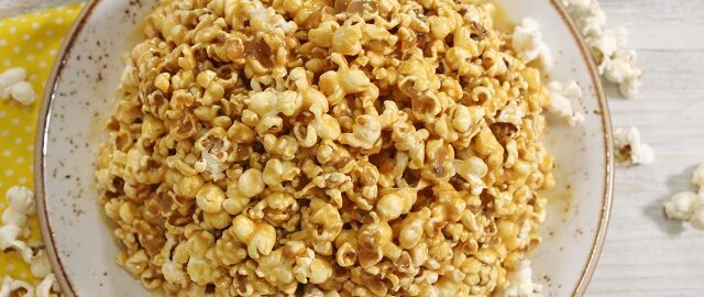 Смешиваем попкорн с масляно-сгущеной смесью. Выкладываем на тарелку. Сформируем полукруг чистыми, смоченными в воде руками. При желании украшаем.