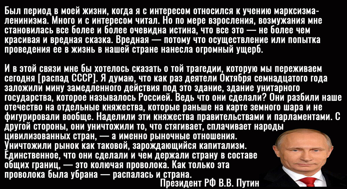 Ещё с самого начала 1990-х годов молодой помощник мэра Санкт-Петербурга Собчака, который буквально вчера служил в КГБ, стал давать публичные интервью о том, что "марксизм – это вредная сказка", а коммунисты фактически разрушили страну, уничтожив капитализм и рыночные отношения.