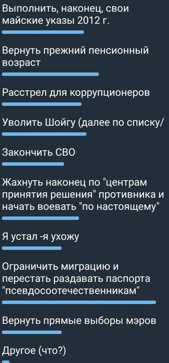 На самом деле довольно смелый опрос, особенно «я устал — я ухожу», за это с депутата могут и спросить.