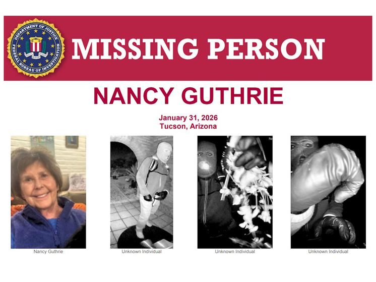Поиски матери ведущей утреннего шоу Саванны Гатри, 84-летней Нэнси Гатри, продолжаются. Федеральное бюро расследований, подключившееся к делу после исчезновения пенсионерки из её дома в Тусоне ранним утром 1 февраля, опубликовало уточненные приметы человека, который, как предполагается, причастен к похищению. На кадрах, распространенных правоохранительными органами, запечатлена фигура в маске, приближающаяся к двери.