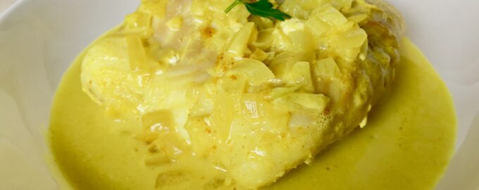 Треска в соусе карри. Быстрый рецепт из филе трески или другой белой рыбы с кокосовым молоком. Палеорецепт.