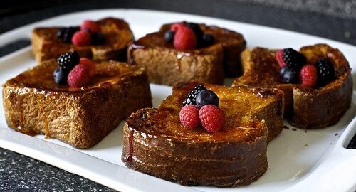 – — Если у вас есть возможность замочить ломтики хлеба в креме на ночь, воспользуйтесь ею. Залейте хлеб кремом и оставьте на всю ночь в холодильнике. В этом случае тосты будут еще более сочными, и переворачивать их не потребуется.