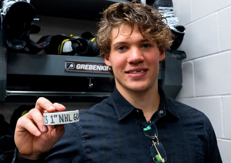 В девяти матчах сезона Гребёнкин набрал 3 (1+2) очка с полезностью «минус 2» и средним временем на льду 9:31. Автор победного гола «Филадельфии», которого партнеры признали лучшим игроком в своем составе, после матча светился в раздевалке команды своей беззубой «овечкинской» улыбкой и не упустил возможности сделать памятное фото с первой шайбой, заброшенной в сильнейшей хоккейной лиге мира.