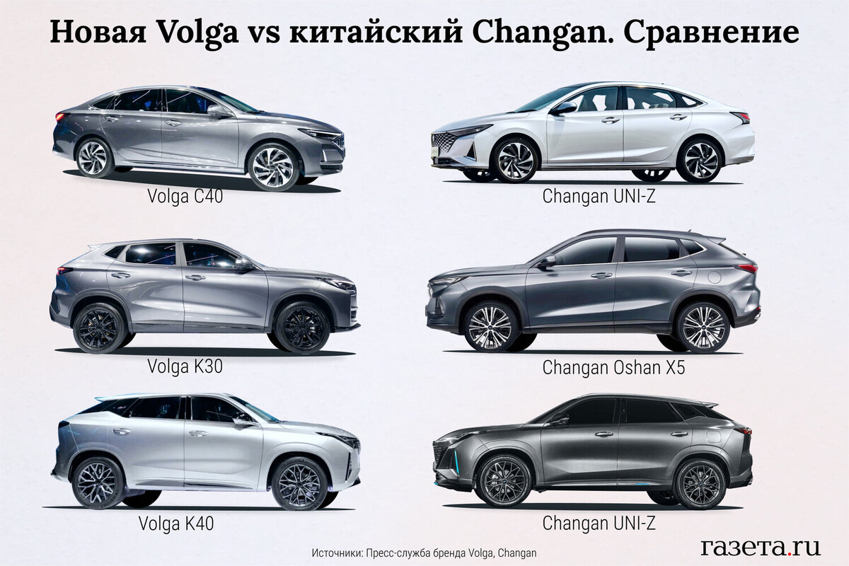 И надо сказать, что на выставке «Цифровая индустрия промышленной России», где присутствовал премьер-министр Михаил Мишустин действительно показали три новеньких "Волги". Модельный ряд состоит из моделей Volga K40, Volga K30 и Volga C40. Однако, вся загвоздка заключается в том, что это перелицованные копии автомобилей китайского гиганта Changan и его суббренда Oshan.