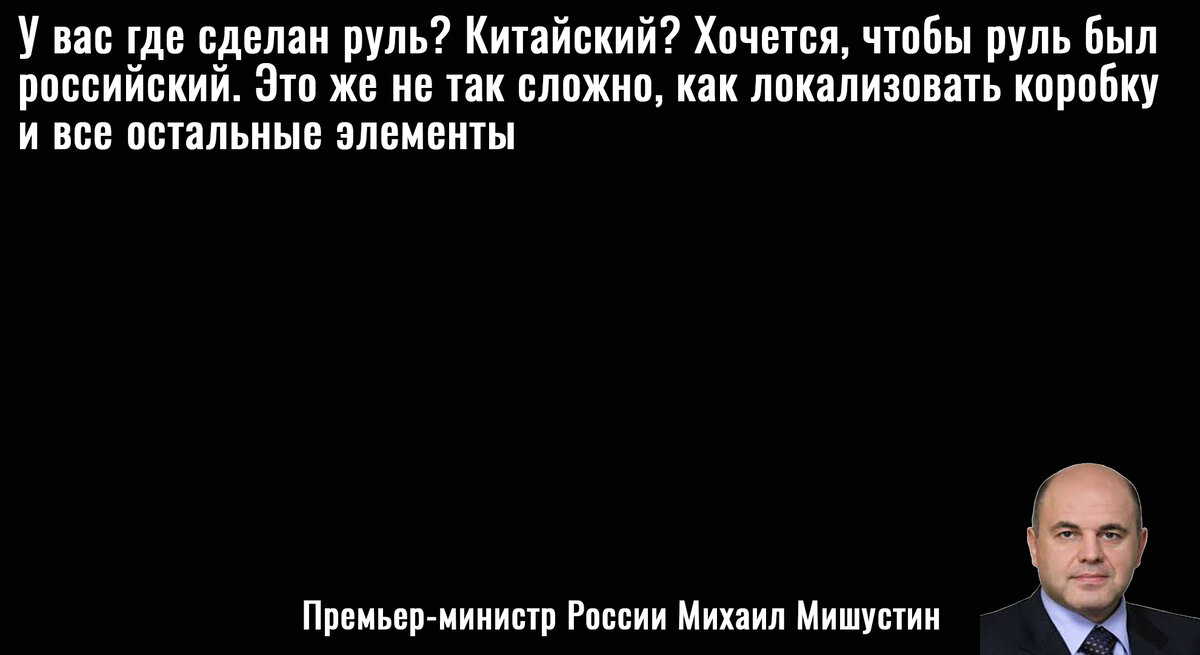 Отличия от оригиналов настолько незначительно, что даже премьер-министр Мишустин пришел в негодование из-за низкой локализации производства в России, так как подобный продукт сложно назвать импортозамещением. Даже такие элементы, как руль оказались сделаны в Китае, а не в России. Таким образом, нам в очередной раз попытались выдать за отечественный автомобиль "китайца" с поменянными шильдиками.