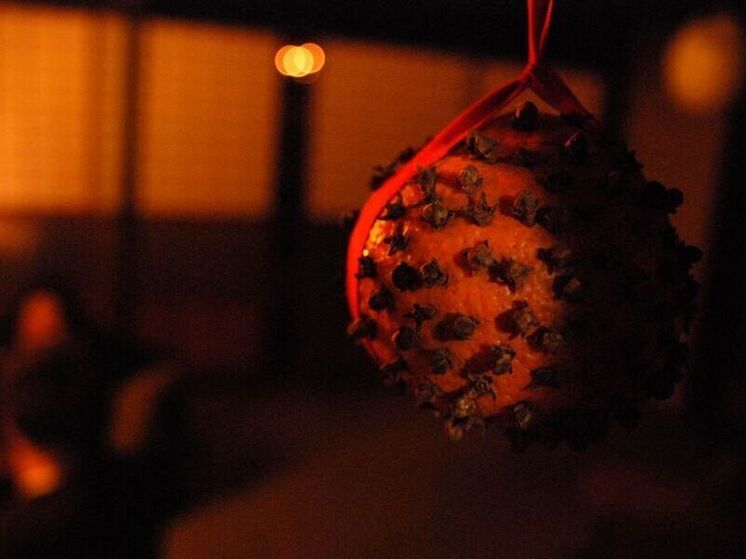 И, если уж совсем по аутентичной стезе пройти и «заморочиться», то можно сделать своими руками и подвесить несколько помандеров из апельсина.