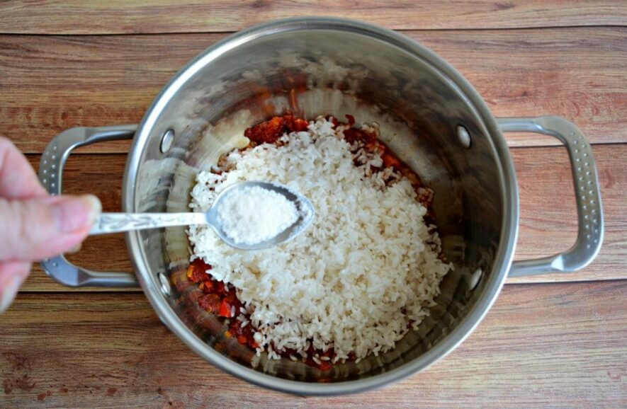 И по этой причине в блюда из риса (плов в том числе) соль нужно добавлять в самом начале приготовления: до закладывания крупы в воду или в первые мгновения после этого.