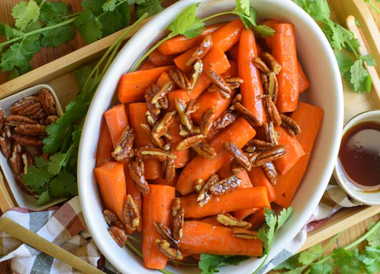 Морковь, запеченная с кленовым сиропом и пеканом