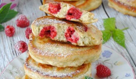 Хотите что-то необычное? Приготовьте замечательный летний десерт — малиновые оладьи с мятой. Легкие, мягкие оладьи с начинкой из целых ягод и освежающим мятным послевкусием. Нежно, аппетитно и сочно!