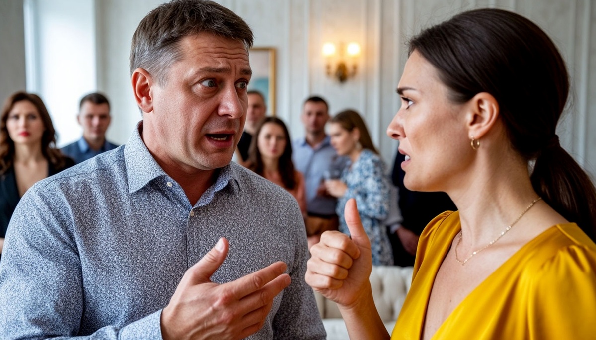 Дмитрий замер. Он смотрел на неё, и лицо его начало медленно краснеть. Гости тоже затихли. Кто-то перестал жевать, кто-то отодвинул бокал в сторону.