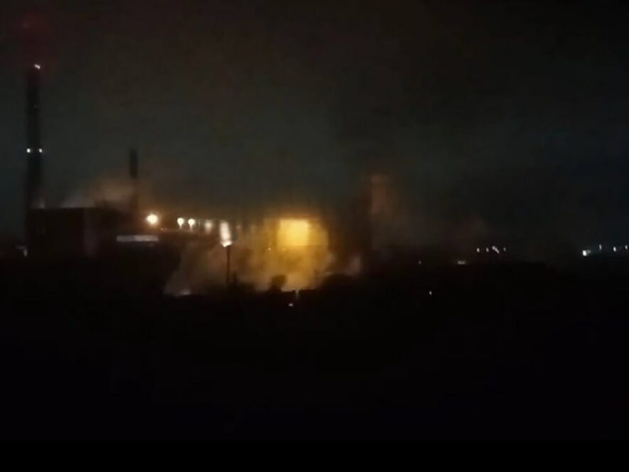 Вспыхнувший пожар на промышленной зоне был запечатлен на видео.