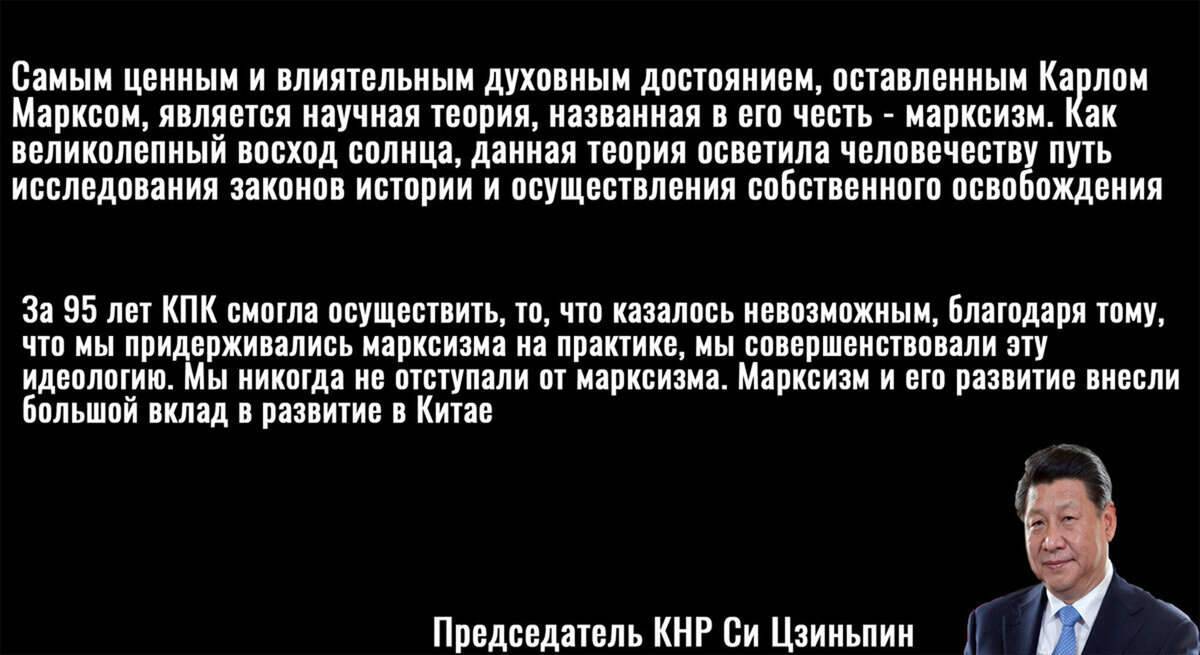 Видимо, таким не очень далёким, с точки зрения «главного начальника», является и председатель КНР Си Цзиньпин, который имеет абсолютно полярное мнение как насчет социализма, так и марксизма. Китайский лидер с большим уважением относится к наследию Маркса, считая, что в изучении этих идей лежит ключ к процветанию его страны.