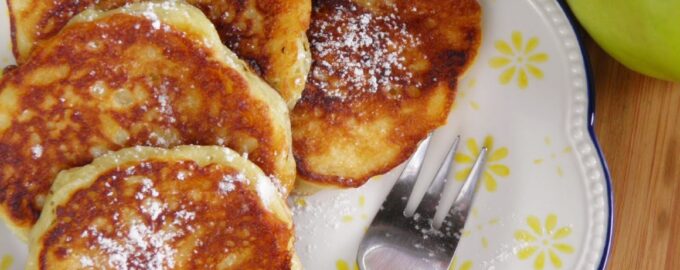 подаем оладьи на йогурте с яблоком