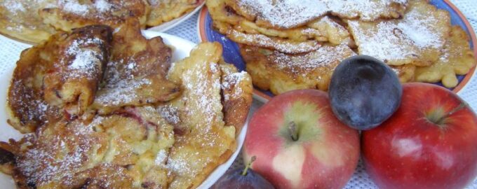 Невероятно вкусные оладьи с фруктами отлично подойдут в качестве десерта! Легкие, мягкие, с сладкой начинкой из яблок и слив. Подавайте с сметаной или йогуртом, не забудьте посыпать сахарной пудрой.