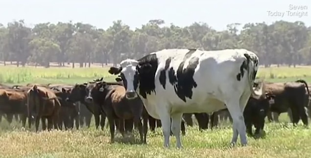 4. Выдающаяся корова живет в далекой Австралии и уже вымахала до 180 см!