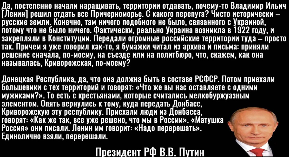 Так что неудивительно, что отечественное начальство любит упрекать большевиков и в других «грехах». Например, одной из излюбленных тем действующего президента является тезис о том, что Ленин и его соратники якобы раздавали русские земли. Этот миф уже давно был разобран на этом канале.