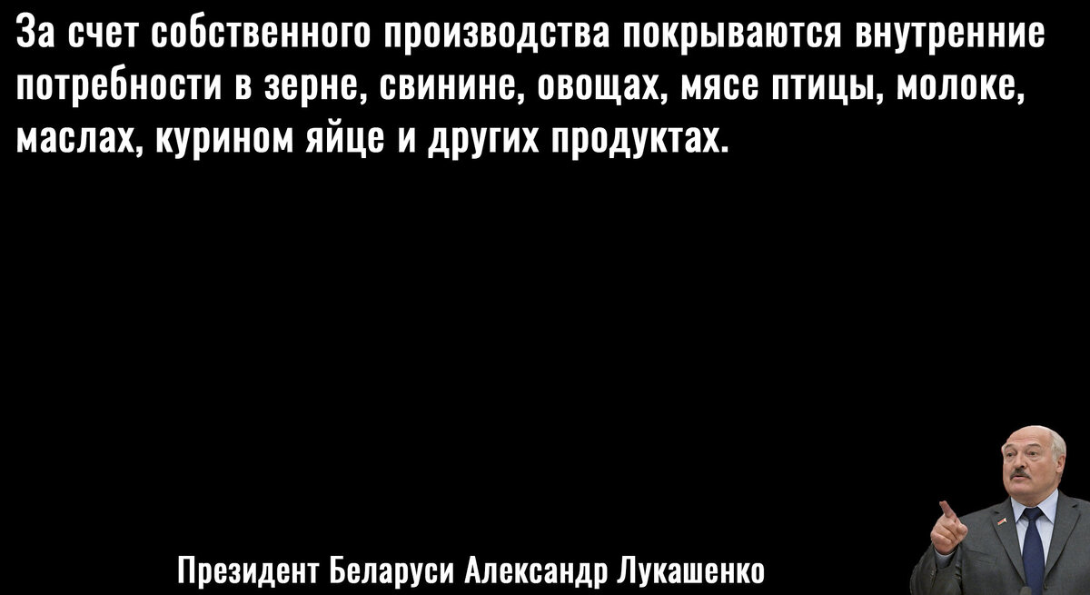 Однако, если такие кризисы происходят, то значит дело в самой существующей системе, поэтому целесообразно взглянуть как обстоят дела в других странах. Например, у наших соседей из Беларуси, где власть не стала разрушать совхозы и колхозы, проводить жесткие рыночные реформы. На саммите ЕАЭС в Санкт-Петербурге Александр Лукашенко сообщил Путину и другим лидерам государств, что его республика самостоятельно закрывает свои потребности в продуктах питания.