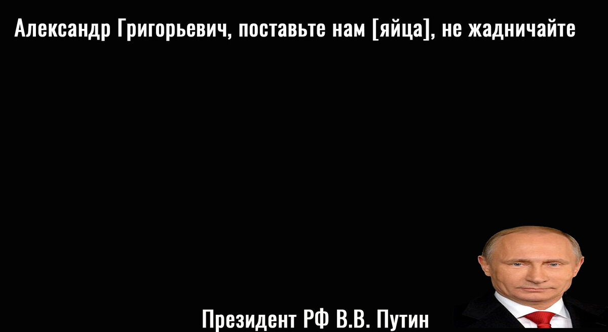 Неудивительно, что Путин, который любит рассказывать про неэффективную советскую экономику, но сам вынужден закупать огромное количество товаров за рубежом, обратился к Александру Григорьевичу с просьбой наладить поставки яиц из Беларуси в Россию.