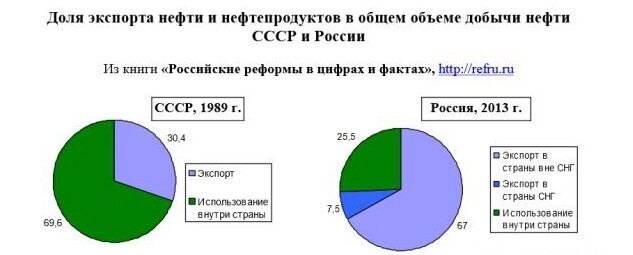 СССР же был ориентирован на увеличение внутреннего потребления, поэтому и зерно время от времени закупали за границей, а также две трети добываемой нефти перерабатывали внутри страны для собственного потребления, а не отправляли на экспорт. Однако об этом господин президент по каким-то причинам предпочитает не рассказывать.
