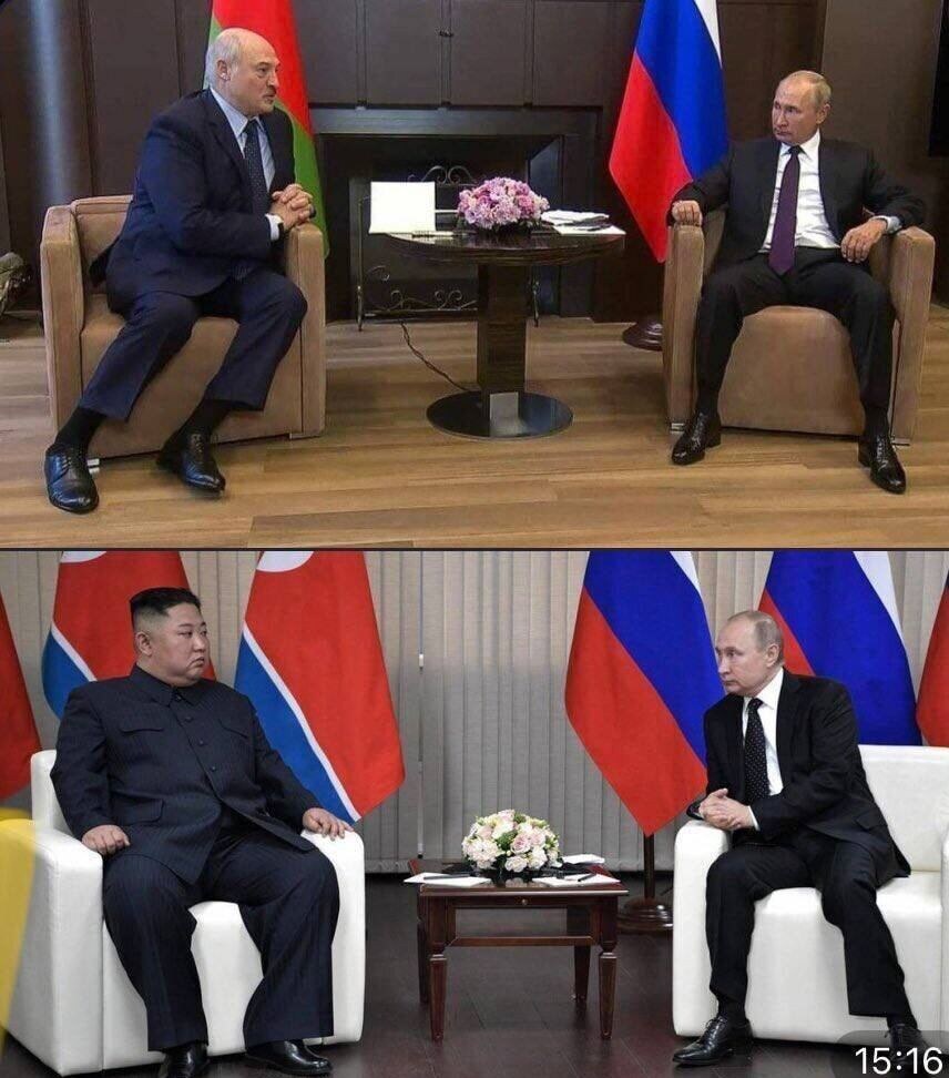 Те, кто хотя бы немного разбирается в невербальном общении могут без труда понять, что на этой встрече Путин находился в "позе просителя", а Ким в позе того, кто в праве удовлетворить или отказать в этой просьбе. Для сравнения: лидер Беларуси Лукашенко был в такой же "позе просителя", когда в 2020 году в стране были протесты и Путин выделил Александру Григорьевичу 1,5 миллиарда долларов.