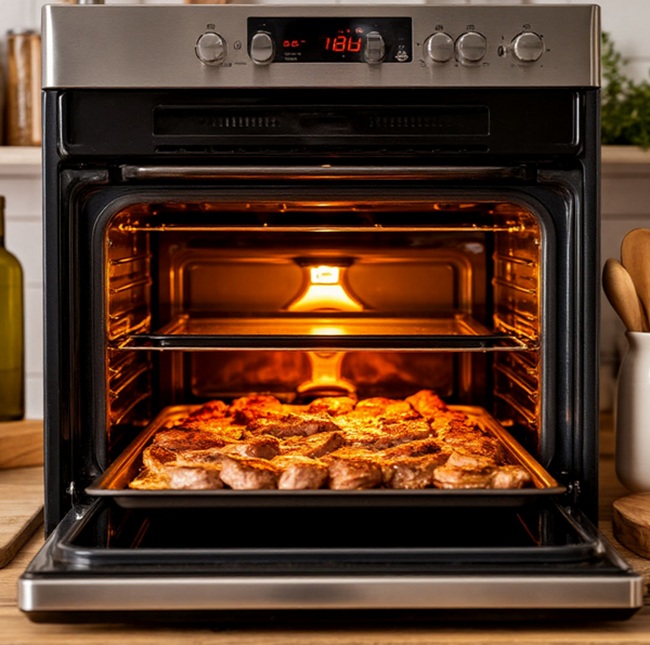 Частое открывание дверцы духовки в процессе готовки негативно сказывается на результате. Каждый раз при открытии температура резко падает, что особенно критично для выпечки (может опасть) и мясных блюд (не образуется хрустящая корочка).