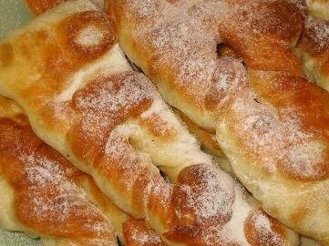 Чуть остывшие пышечки-вертушки переложите на сервировочное блюдо и посыпьте сахарной пудрой. Подавайте к столу с чаем, какао, кофе или соками. Приятного Вам аппетита!