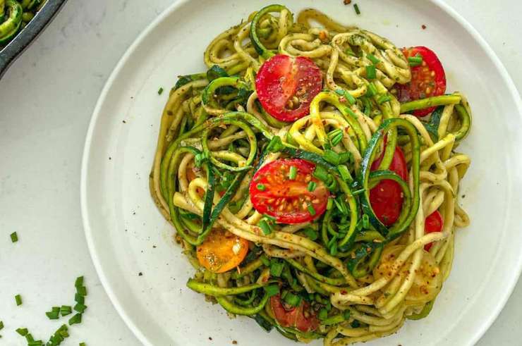 Кабачковые спагетти с соусом песто