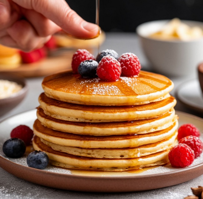 Для любителей более пышной текстуры этот вариант станет идеальным. Основные ингредиенты: кефир, яйца, мука, сода и соль. Тесто должно быть немного гуще, чем для традиционных блинов. В результате получаются мягкие и толстые блинчики, напоминающие оладьи. Их можно подавать с различными начинками — от сладкого творога и варенья до мясных или грибных закусок.