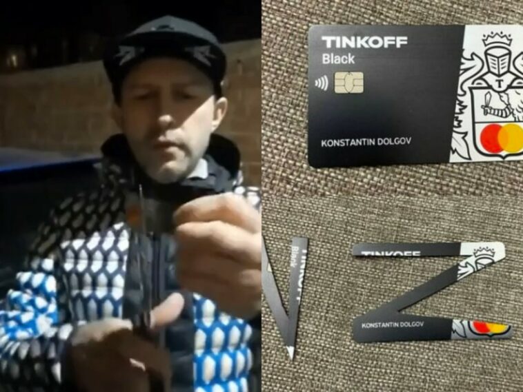 В ответ на заявление Тинькова россияне начали разрезать карты и делать из них символы «Z» и «V».