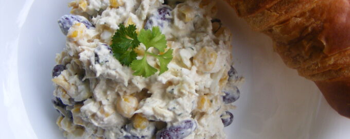 подаем салат из курицы и фасоли