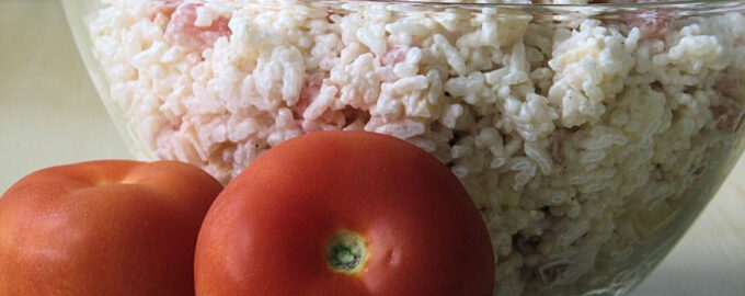 подаем салат из риса и помидор