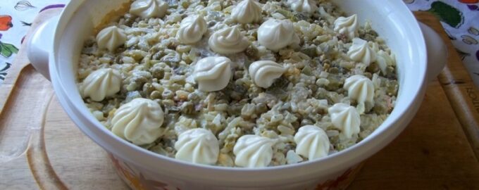 – Вместо майонеза можно использовать сметану, смешанную с горчицей и вареным яичным желтком.