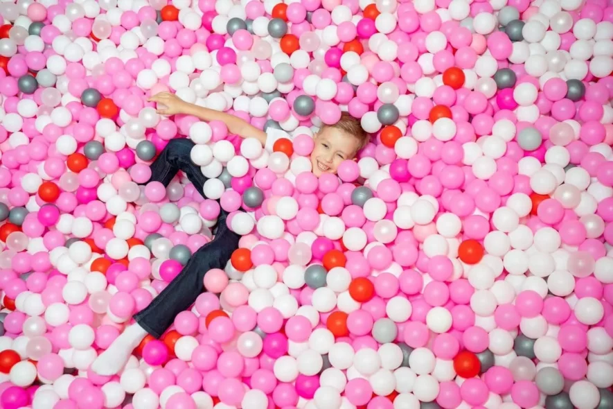 Сначала попадаешь в атмосферу полного отрыва от реальности. Внутри ярко, шумно в хорошем смысле, везде фотозоны, которые сами просятся в сторис. Дети сразу бегут в бассейн с шариками — огромный сухой бассейн, где можно нырять, прыгать и просто валяться часами. Взрослые тоже не удерживаются: залезаешь по шею в разноцветные шары и чувствуешь себя ребёнком лет восьми. Мои племянники там устроили настоящую войну шариками — смех стоял такой, что уши закладывало.