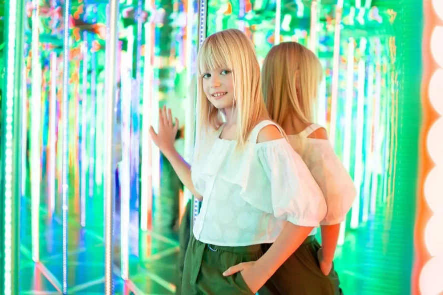 Не обошли стороной Зеркальный лабиринт и Ленточный лабиринт. В зеркальном теряешься моментально — сто стен, все отражают тебя, ищешь выход полчаса, хохочешь над кривыми отражениями. Ленточный — это когда стены из ярких лент, которые постоянно меняют конфигурацию, и ты будто в калейдоскопе.