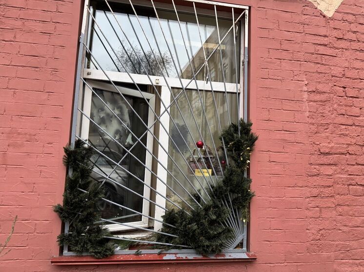 Кухонное окно с решётками Качалиной выходит во двор. Сейчас рама приоткрыта. Внутри горит свет. По периметру решётки намотан искусственный еловый венок с новогодними шариками и гирляндой. Судя по всему, Ксения готовилась к Новому году.