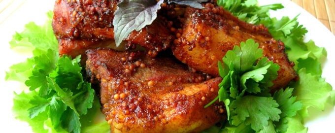 Как приготовить рецепт Свиные ребра в пикантном маринаде, запеченные в рукаве