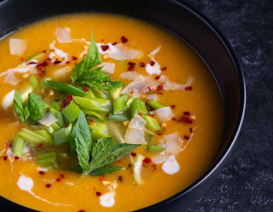 Супы осенью — это не только забота о здоровье, но и истинное наслаждение. Они мягко согревают изнутри, уменьшая эмоциональное и физическое напряжение (не зря тех, кто восстанавливается, часто кормят супом!) и помогают организму легче справляться с прохладой. В сезон корнеплодов и тыкв супы становятся отличным способом получить клетчатку, витамины и минералы без тяжести в желудке, а также обеспечивают хорошее увлажнение. Легкие бульоны укрепляют иммунную систему, а крем-супы обеспечивают длительное насыщение благодаря овощам и бобовым, в то время как пряности, такие как имбирь и куркума, мягко стимулируют обмен веществ. Шеф-повар Руслан Миронов поделился рецептами аппетитных осенних супов.