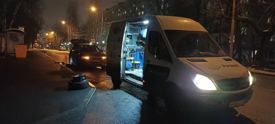 Спустило колесо у подъезда на Кронштадтском бульваре или ночью на парковке — звонишь, и уже через 20–40 минут приезжает полностью оснащённый фургон. Выездной шиномонтаж метро Водный стадион работает круглосуточно, и это реально выручает, когда нужно срочно ехать рано утром или возвращаешься поздно вечером.